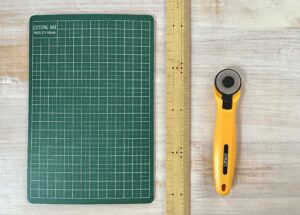 まずは、材料となる生地を正方形に切っていくときに使う道具が必要です。