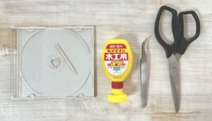そして、木工用ボンドを使う分出しておく場所として、CDケースを使います。