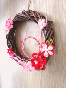 ちょっとだけ「和」のテイストが入った、リースが出来上がります。