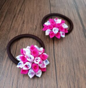 それを組み合わせて作れば紫陽花のヘアゴムの完成です。