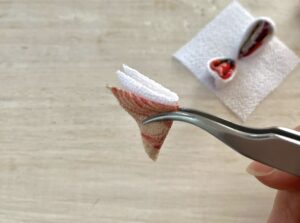 折りたたんで、ピンセットで持ち替えたのが上写真の様子です。