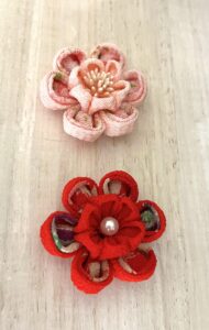 どんなつまみ細工のお花ができるのかは、組み合わせ次第!