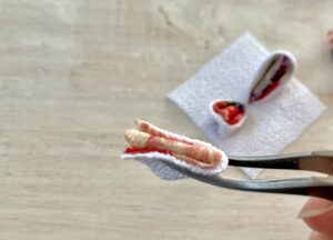 折りたたんで、ピンセットで持ち替えたのが上写真の様子です。