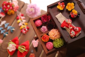 ここでは和装に合わせる髪飾りとして人気の、つまみ細工の髪飾りについて、