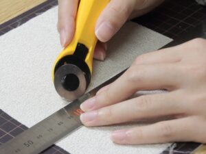 正方形に生地をカットする際は、真っすぐ正確なサイズにカットすることが重要です。