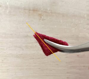 折りたたんだ後、底部をカットする際は、カットする角度を揃えることが大切です。
