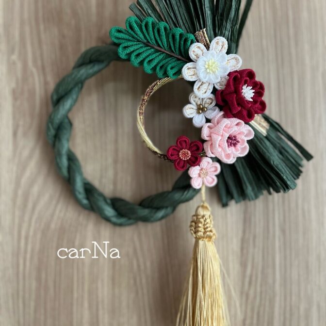 シックな雰囲気をイメージしたつまみ細工のお正月飾りです。