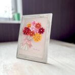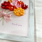 ひとつひとつ手作りで仕上げたつまみ細工の花束を額装に。