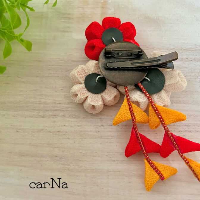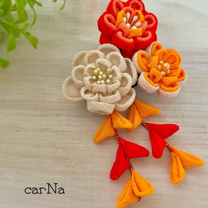 髪飾り ちりめん髪飾り(朱・山吹) 通常価格 4,180 円 (税込) 購入はこちら ※商品価格以外に別途送料がかかります。 説明 朱色・山吹色・アイボリーのちりめん生地を使用しています。 2wayクリップ付きのため、好きな位置にパチっと簡単に着けることができます。 成人式や卒業式・七五三など、晴れの日の髪飾りとして――― サイズ/全長:8㎝×12㎝ 材質/ちりめん 留具/2wayクリップ ♦ 水濡れにはご注意ください。 ♦ 自然光で撮影しておりますが、ご覧になる環境によっては色の見え方が若干異なる場合があります。 この商品が紹介された特集 和装 小物 コメントは受け付けていません。