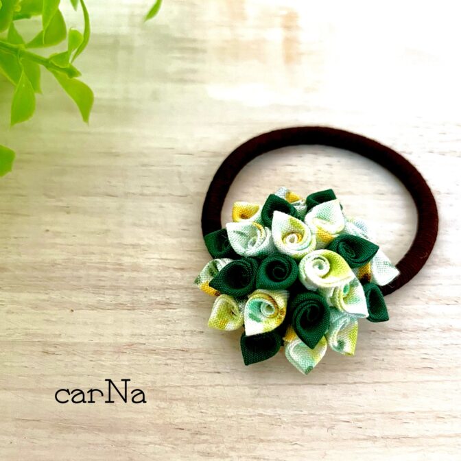 ヘアゴム 小花のヘアゴム グリーン 通常価格 1,760 円 (税込) 購入はこちら ※商品価格以外に別途送料がかかります。 説明 緑と淡い色の柄の入った生地を使用しています。 ちょっとだけ着飾って出掛けたいときに、花を添えてくれます。 手首に付けて、ブレスレットにしても存在感があります。 お子様にもおすすめです。 サイズ/花:直径4㎝ ゴム:直径5㎝ 材質/綿 ♦ 水濡れにはご注意ください。 ♦ 柄の出方はひとつひとつ異なります。 ♦ 自然光で撮影しておりますが、ご覧になる環境によっては色の見え方が若干異なる場合があります。 この商品が紹介された特集 和装 小物 コメントは受け付けていません。